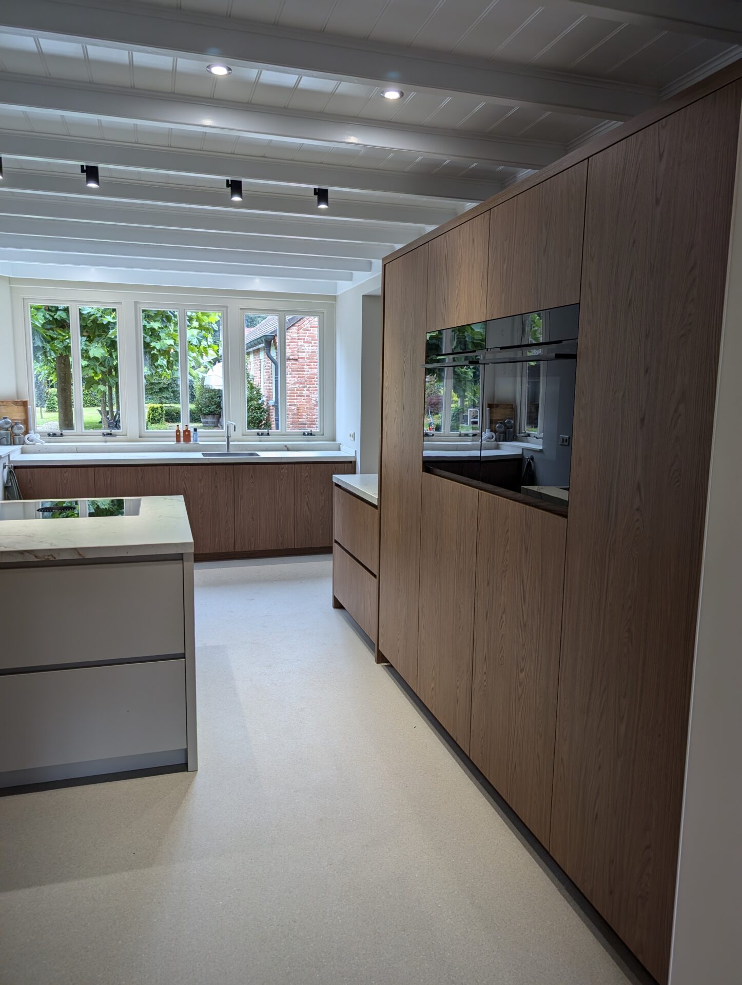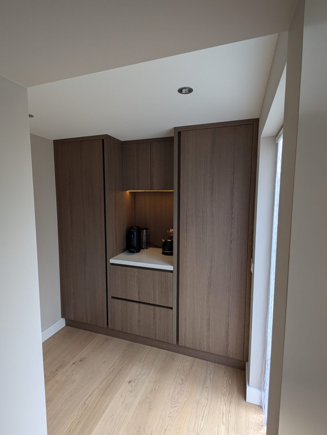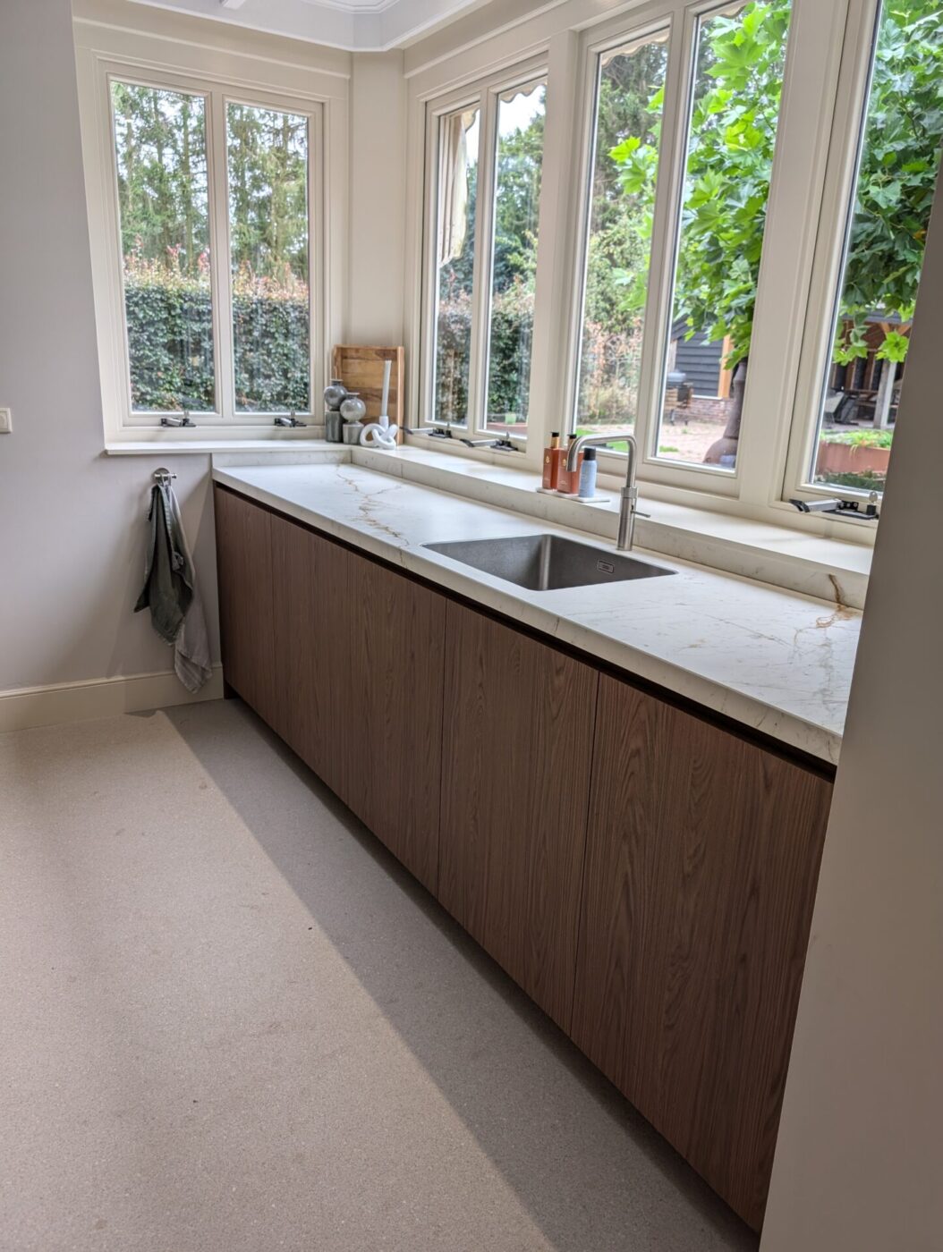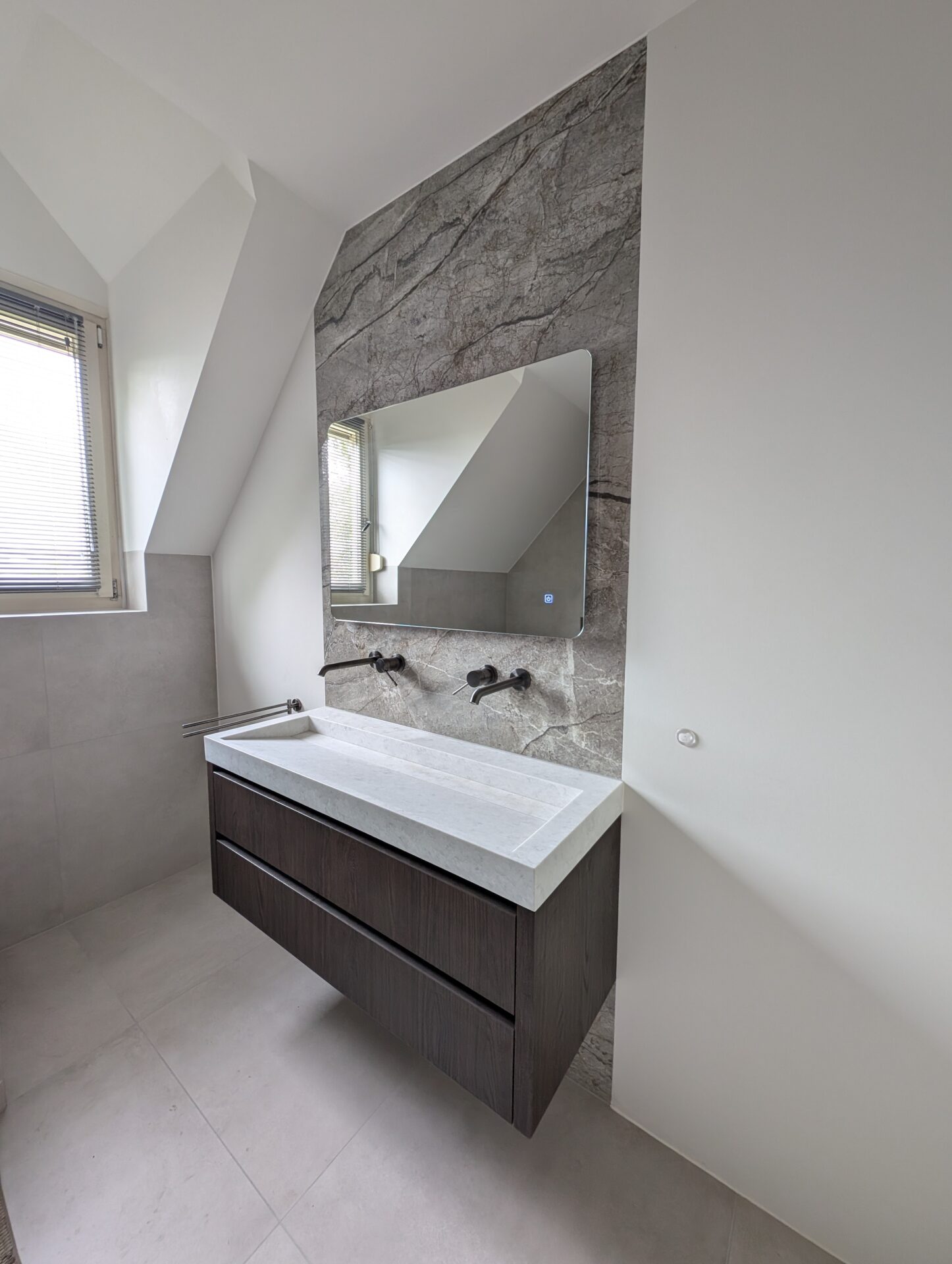 Bij Volmaak trekken we maatwerk door in het hele huis. We maakten onder andere een keuken, badmeubel, inloopkasten, werkruimte en tv-meubel, allemaal in één stijl, perfect op elkaar afgestemd.