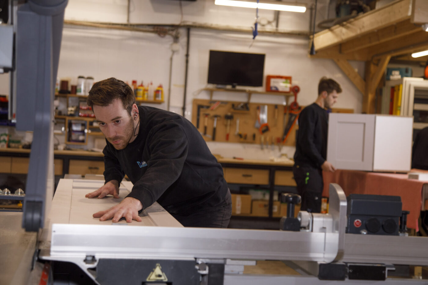 Hier komt jouw maatwerk tot leven. In onze werkplaats combineren we precisie en oog voor detail. Van ruwe materialen tot perfect afgewerkte meubels, elk project wordt hier met zorg en aandacht gemaakt. Neem hieronder een kijkje achter de schermen, waar onze ideeën werkelijkheid worden.